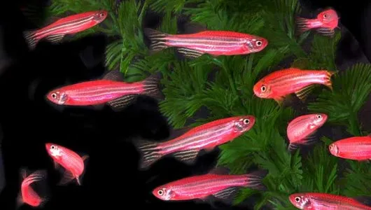 The little zebra fish were originally developed by researchers in Singapore to signal the presence of water pollutants by changing colour. "These fish were bred to help fight environmental pollution," Blake said. "They were bred to fluoresce in the presence of toxins."