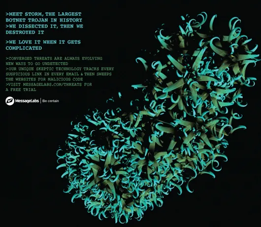 Now there is an interesting biomimicmarketing technique we had not seen before. For their new marketing campaign internet security company Messagelabs worked with digital artist Alex Dragulescu to graphically show what cyber threats actually look like. The images are generated from the actual code from each of the threats.