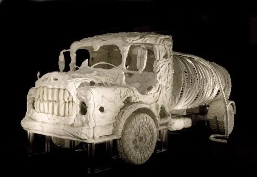 This skeleton truck was dug up created by Jitish Kallat.