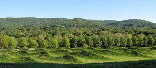 For the Storm King Art Center, artist Maya Lin created a simulation of undulating, rolling of waves using earth and grass. The waves range in height from ten to fifteen feet, with a trough-to-trough distance of approximately forty feet. Because it is executed in the same scale as an actual set of waves, the viewer's experience is similar to that of being at sea, where one loses visual contact with adjacent waves. Compound curves allow for a complex and subtle reading of the space in the form of an environment that pulls the viewer into its interior and creates a sense of total immersion.