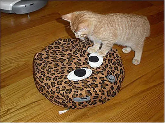 Tiger meets tiger. Apparently some of the owners of a vacuum cleaning robot feel the need to 'costumize' their device. We are now awaiting the witty bio-robotics company that integrates the vacuum cleaning functionality in the house cat.
