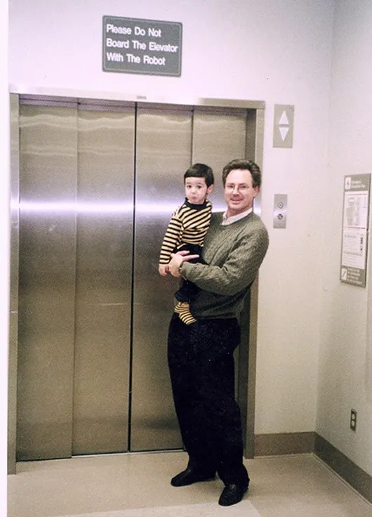 Several years later I came back to Stanford Hospital with my family for the birth of my niece. I was carrying my son past Labor and Delivery, when I noticed that elevator from my past life. Now, posted over the elevator was a sign stating: “Please Do Not Board the Elevator With The Robot.”