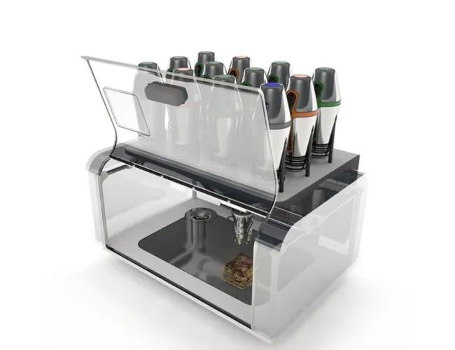 According to researchers Marcelo Coelho and Amit Zoran, who are now working on the printer, the cooking process starts with an array of food canisters that refrigerate and store your favorite ingredients, waiting to be piped into a mixer and extruder head that can accurately deposit different combinations of food.