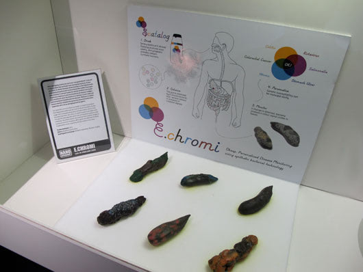 Echromi The Scatalog – Allows you to read your stool through genetically modified microbes that color your poop depending on your health condition, by Alexandra Daisy Ginsberg and James King.