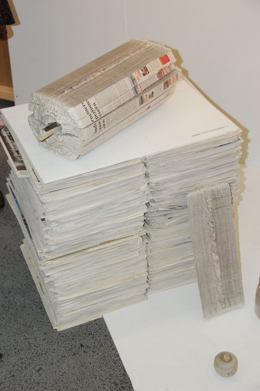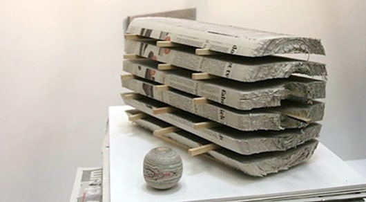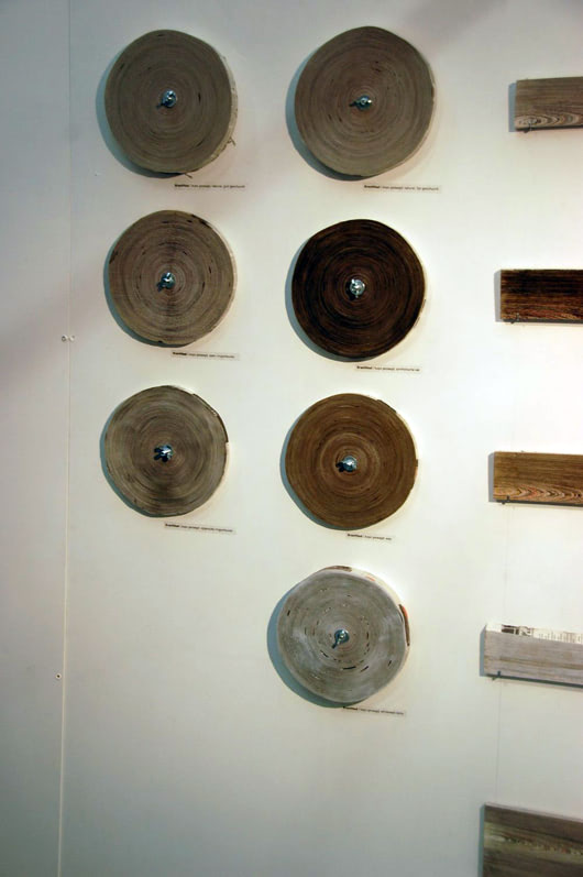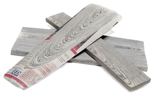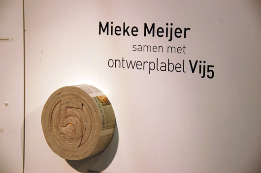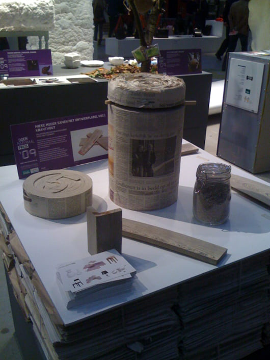 How to upcycle old newspapers? Mieke Meijer (a.o.) from Vij5 took a jar of glue and started imitating tree rings. "The product surprisingly mimics the quality of real wood" she states.