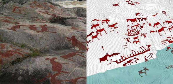 Using analytical software the scientists compared the imagery over large areas – adding and taking off layers to create a sense of how people built on existing images. Carved from 4000 B.C. to 600 B.C., the rock art depicts people, animals, boats and hunting scenes. It was created by generations of semi-nomadic people, who lived more inland in winter to hunt elk, and then occupied areas closer to coasts and rivers to fish.
