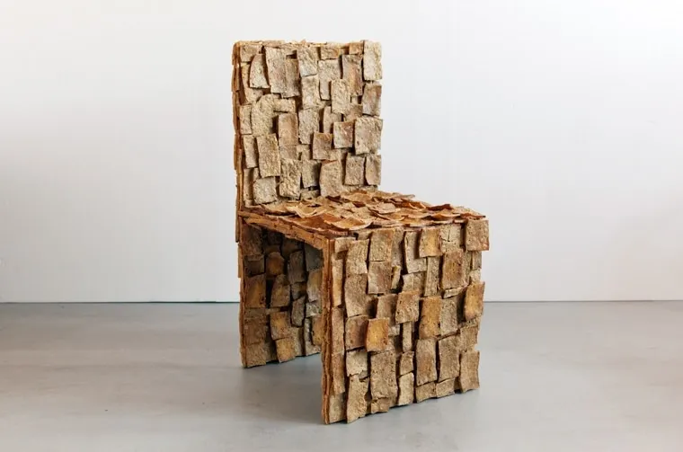 The Italian designer Leonardo Talarico, recently included among Italy's 15 most talented young artists, pulled tofu out of the kitchen and used it to make a chair, the Tofu Chair. The chair, called an “ideal vegetarian throne”, is made of several layers of dried tofu, previously exposed to a thermal shock to turn them into a very durable, eco-friendly material. The final touch is a coat of natural color to give the chair a finished look.