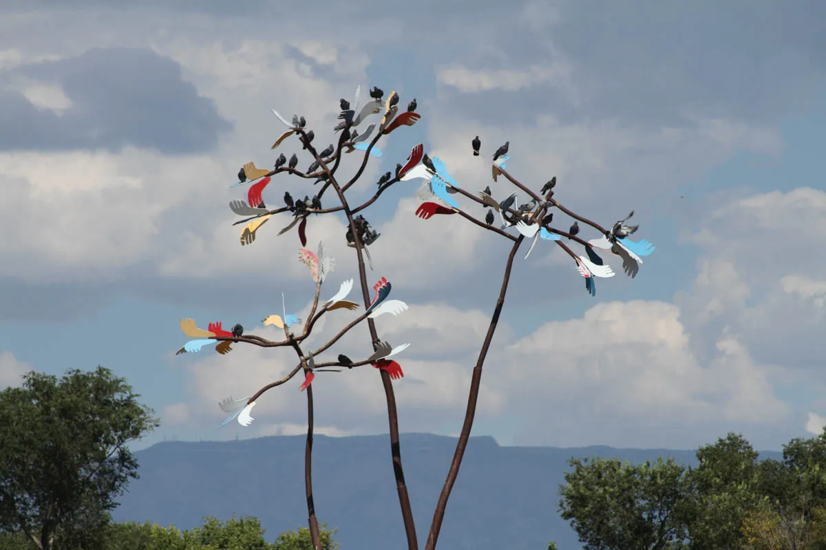 When fake nature interacts with the natural environment. Phone antenna trees grow alongside real pines, mountains are supported by steel, robot fishes swim with marine creatures and pigeons land on the branches of a fake tree. Peculiar image of the week. Via John Fleck