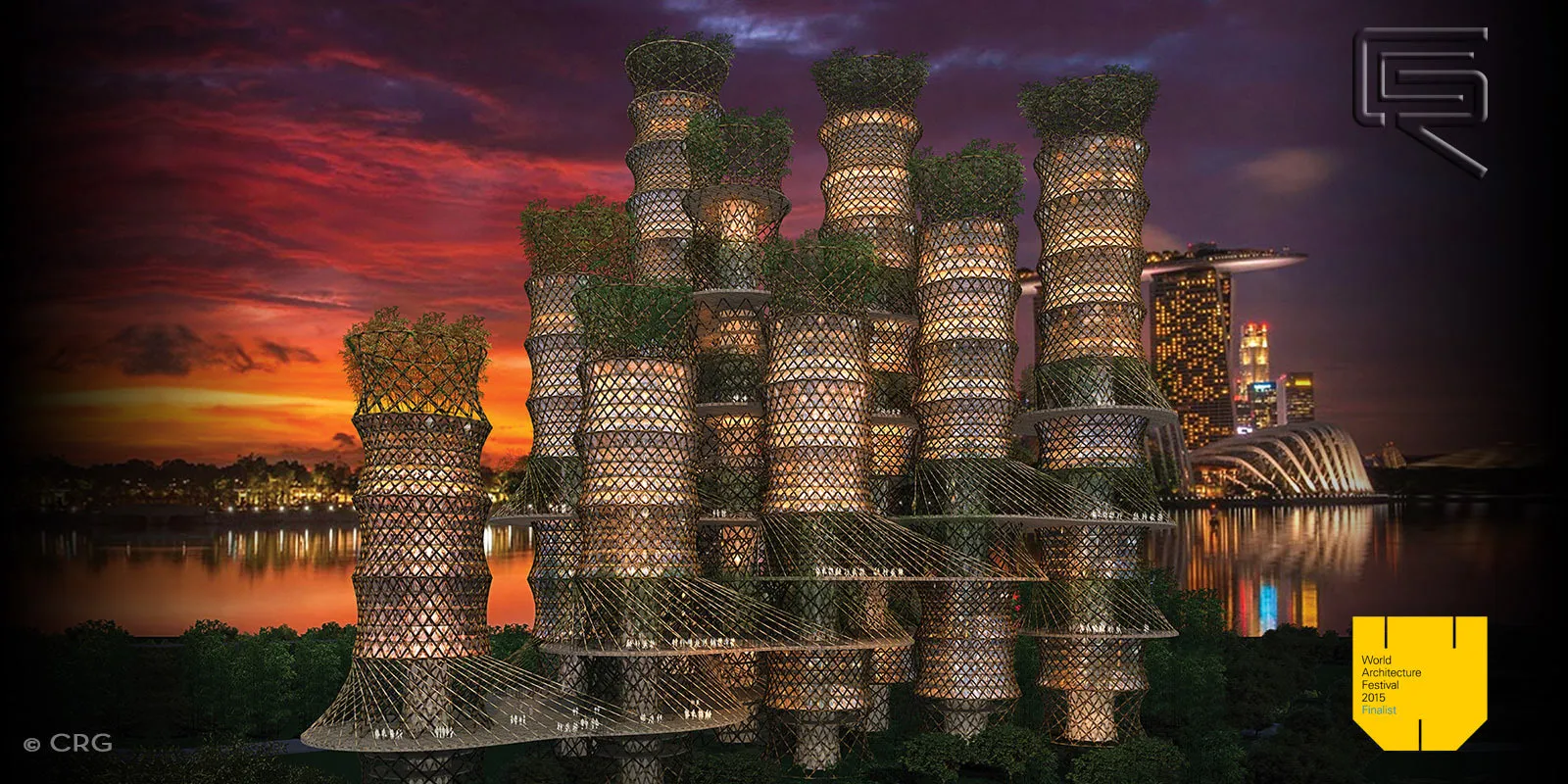 Inspired by the natural bamboo forests, where a wide range of trees coexist and create an overlapping network, a group of architects looked at natural forests to design the Bamboo Skyscraper. With this project the team at CRG Architects rethought the way we build and asked: what if we stopped cutting into our forests and started recreating them?