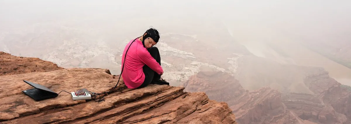 Cover photo: Kate waits for a storm to pass in southern Utah while wearing an EEG cap and facial electrodes that record her brain activity. Researchers at the Universtity of Utah, working under neuroscientist David Strayer, are conducting studies measuring cognition in nature.