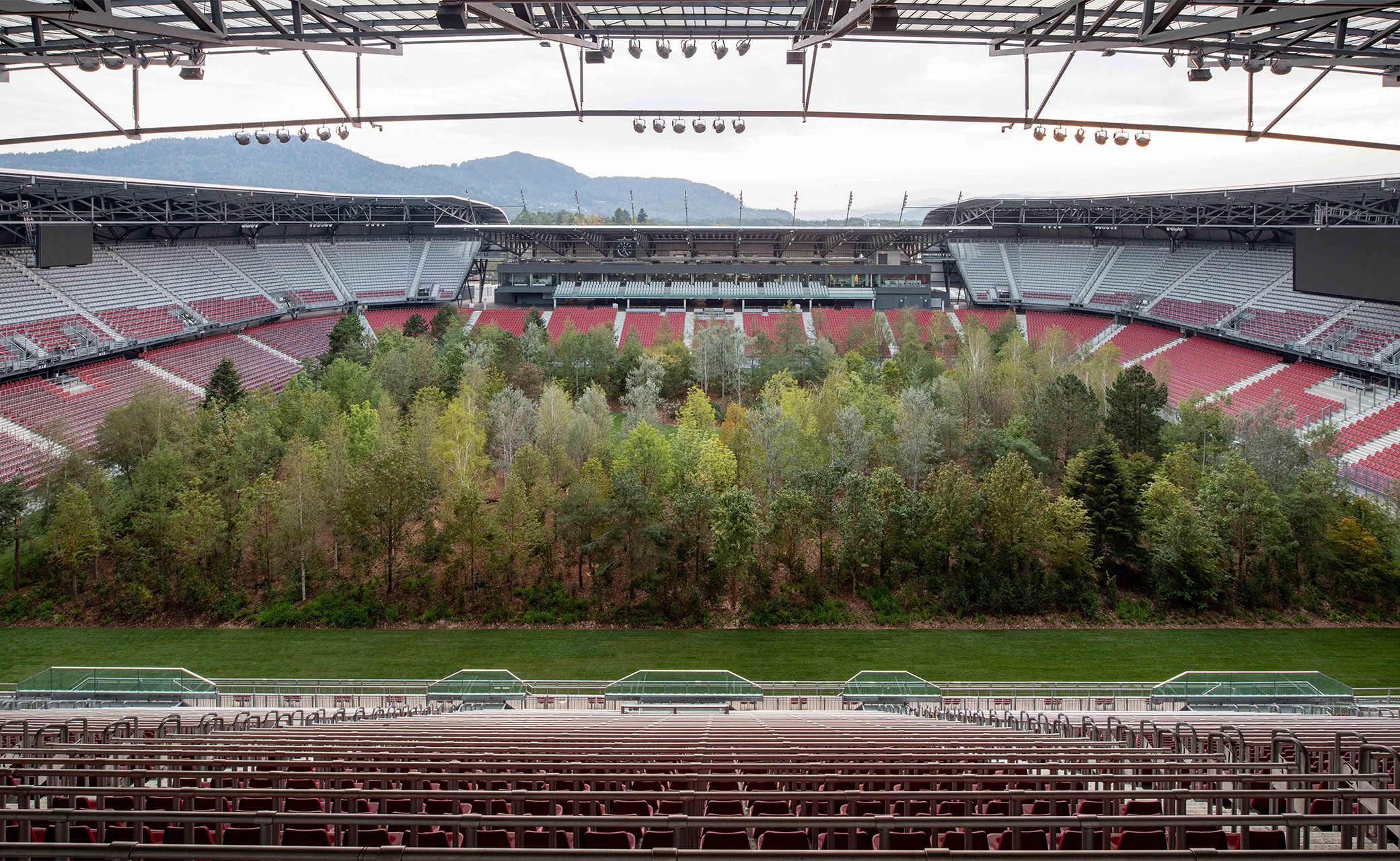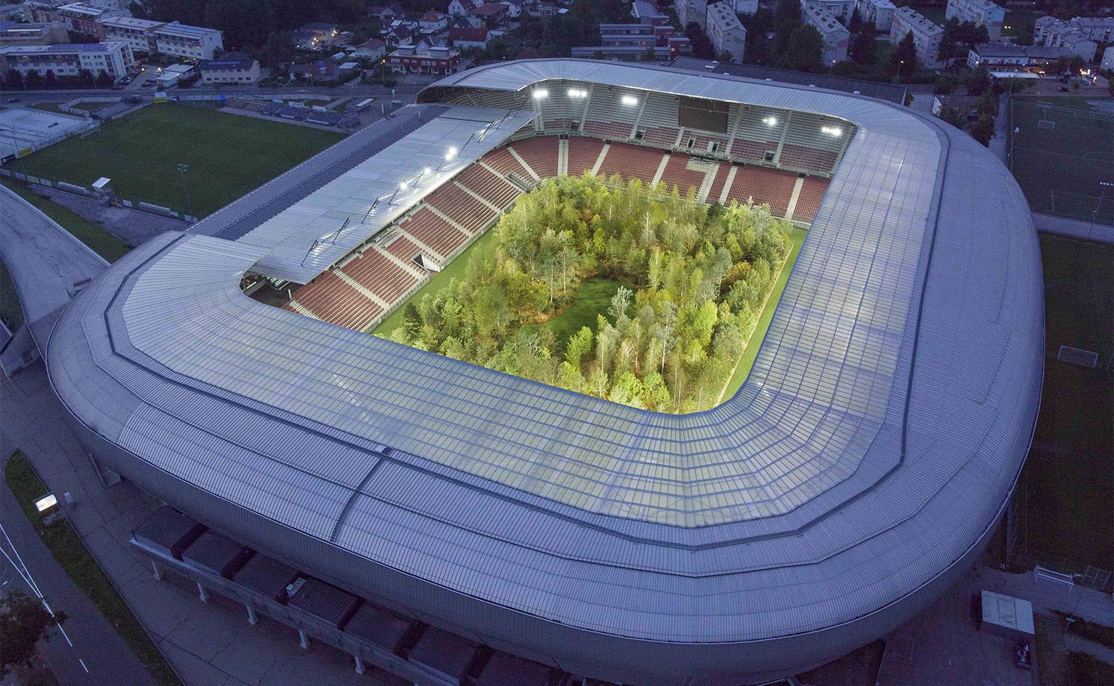 Some centuries ago landscape painters taught us to appreciate the quality of an untouched landscape. Ever since we have been doing everything to recreate it. We camouflage cell phone antenna mast to look like trees, we fly thousands of miles to experience a pristine landscape — and, as of this month, we can visit a native European forest inside an Austrian football stadium.