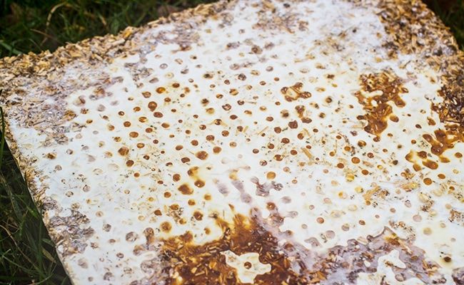 Elvin also enthusiastically talks about the work of her students who followed the Material Driven Design course at the Faculty of Industrial Design Engineering, TU Delft. “Students realised that on the surface of the mycelium-based material, when the skin doesn’t grow, the material becomes porous. If these holes are in contact with water, the color of the material changes from cream into a dark brown, almost like paint. Finding the way to intentionally create holes on the material surface, the students developed different patterns which appear when exposed to water. When it dries, it goes back to its original color, which takes about a day.”