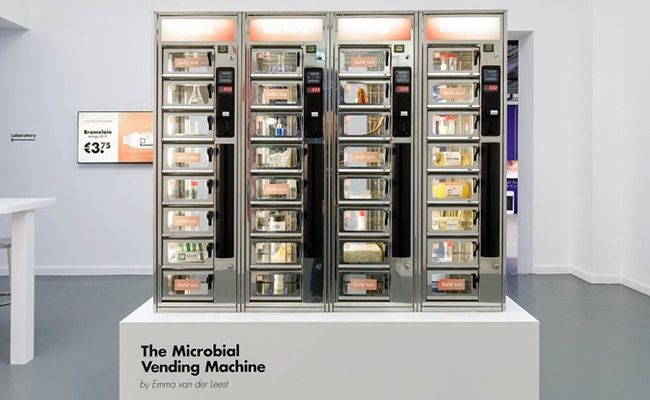 “This is to show people that in less than 10 years, taking an organism out of the wall will be as easy as it is to get a soda from a vending machine today.” And the accessibility of biomaterials such as algae, fungi and bacteria is essential for bio design and biotechnology to thrive. “These collectable organisms may be far more valuable in the near future than any candy bar or soda. Ultimately, the organisms enable us to approach design, science and construction in an entirely new fashion.”