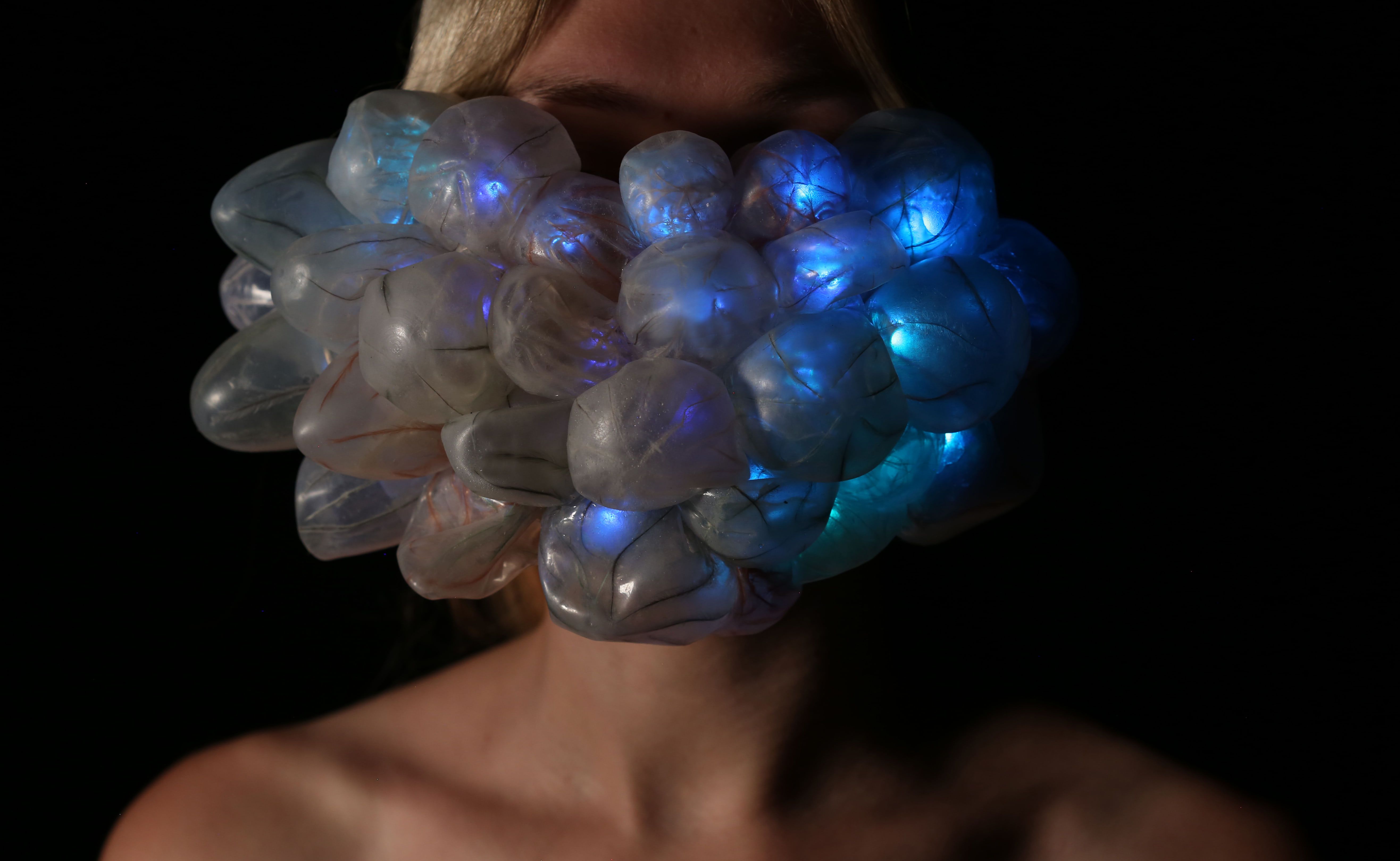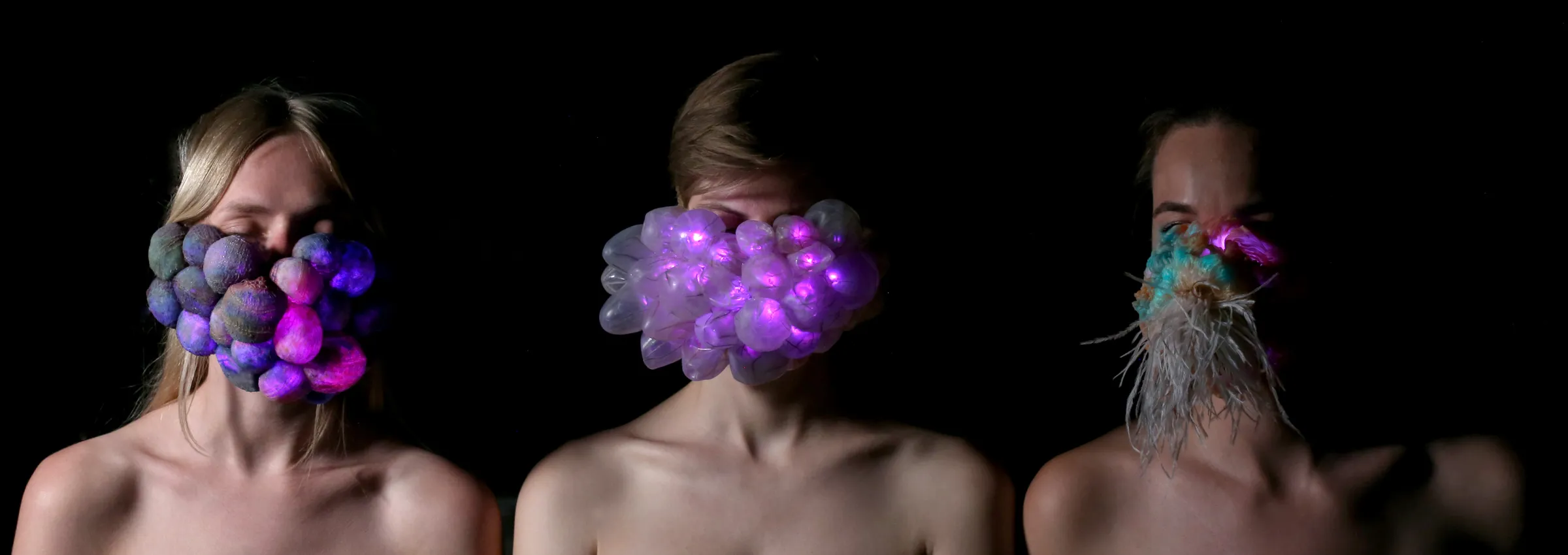 The Microbial Masks are physical, haptic and form interactive conversation pieces that challenge the senses and imagination, triggering the exchange of insights between different professions, from artists to scientists, to learn from each other’s perspectives.