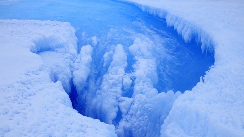 Meanwhile in Greenland, scientists have observed entire lakes draining away within a matter of days, as meltwater plunges through vertical shafts in the ice sheet known as “moulins”. A warm, wet base lubricated by meltwater allows the ice to slide quicker and flow faster into the ocean.