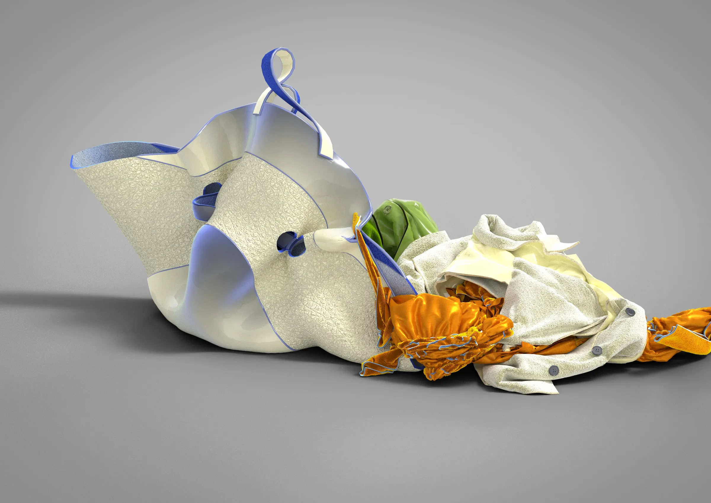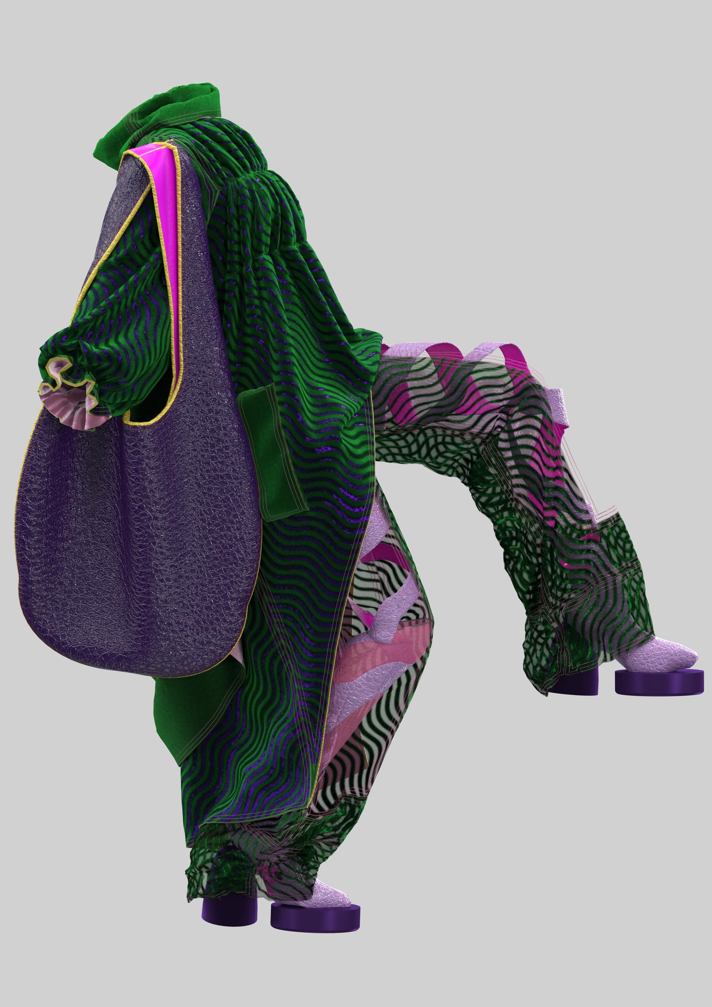 The creative design process for digital clothing offers "the countless possibilities and the enormous adaptability that the different softwares offer". The studio are always thinking a lot about how these digital silhouettes and fabrics will move. But what does tactility mean in a digital world? ‘In Pursuit of Tactility’ is an exploration into what fashion design could become in the digital world. The possibilities of 3D photography, animation, virtual reality and soundscape offer an interdisciplinary project group that ‘re-defines’ tactility.
