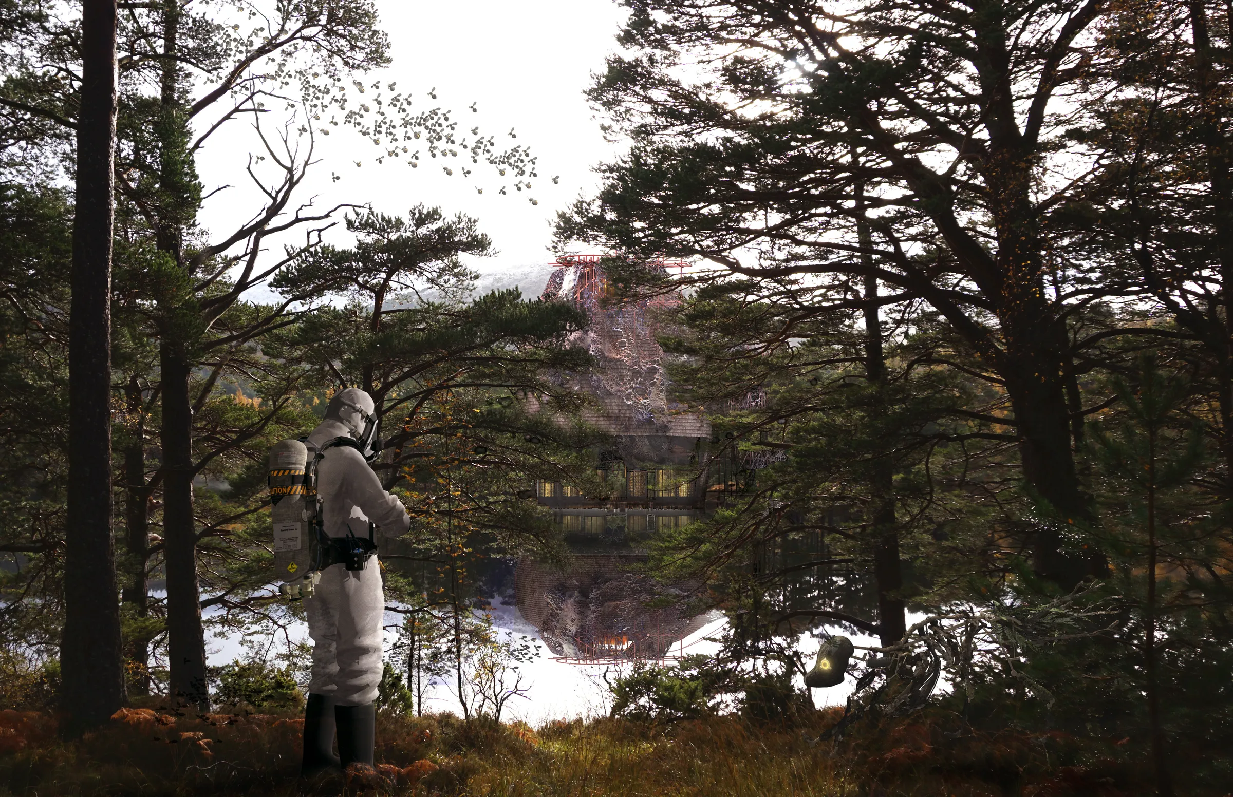 Marie Walker-Smith is a London based architectural designer whose work speculates on the future of the non-human. Her postgraduate project titled Bionic Landscapes & Superhyphae is a thesis project, written to accompany The Last Forest: Rothiemurchus 2098. The project proposes a thought-provoking, speculative scenario on the future of forests. Set in the year 2098, the Rothiemurchus forest is one of the last remnants of a global project from the United Nations which aimed to preserve the last biodiverse places on earth. This ‘safe haven’ was separated from mankind, and replaced by an intelligent robotic infrastructure, designed to maintain the forest. We discover the place from the perspective of a biologist, within a mysterious world where nature itself appears to have evolved with the help of intelligent machines. Through her project, Marie aims to fundamentally question the purpose of architecture in design, shifting design towards the non-human. We met with Marie to discuss the project, the benefits of cybernetic ecology and becoming custodians for nature through distanced authorship.
