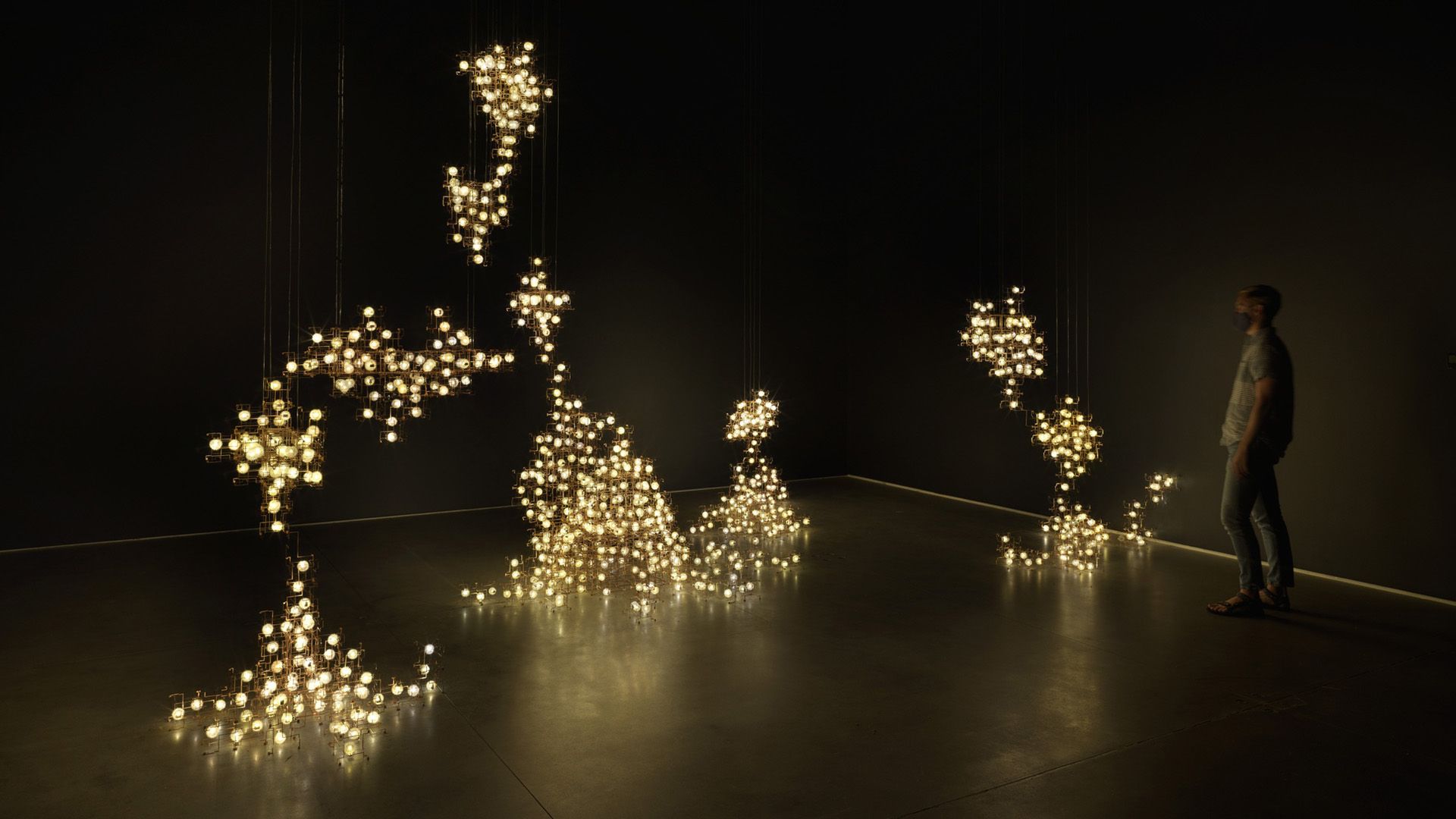 Shimmering lights drifting as elm seeds in the wind, luminous strings of light shifting between man-made and natural structures, dandelion seeds melding with brass and light. These represent the possible installations that you can experience at Studio DRIFT’s new exhibition, Fragile Futures, in New York City presented by Superblue. Located at The Shed, an innovative arts center on the westside of Manhattan, this exhibition is a combination of live performance, custom soundtracks by ANOHNI, and surreal exhibitions combining the grace of nature with the technological developments of man.