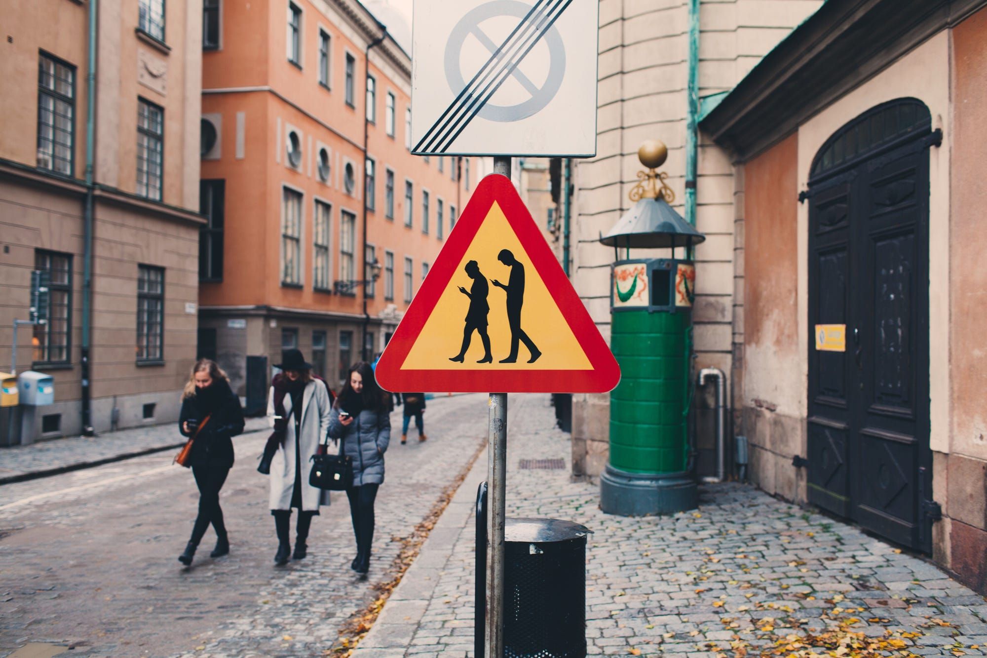 In the inner city of Stockholm, pedestrians are warned for smartphone zombies. In order to notice the sign, they should not be glued to their phones themselves, though.