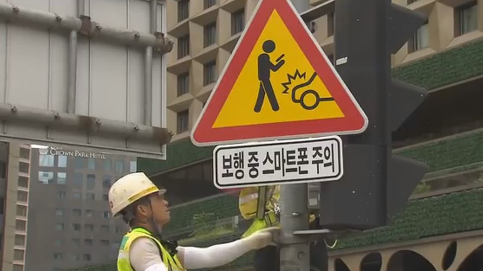 Also in Seoul traffic signs have been placed to warn pedestrians of the dangers of smartphone usage in traffic.