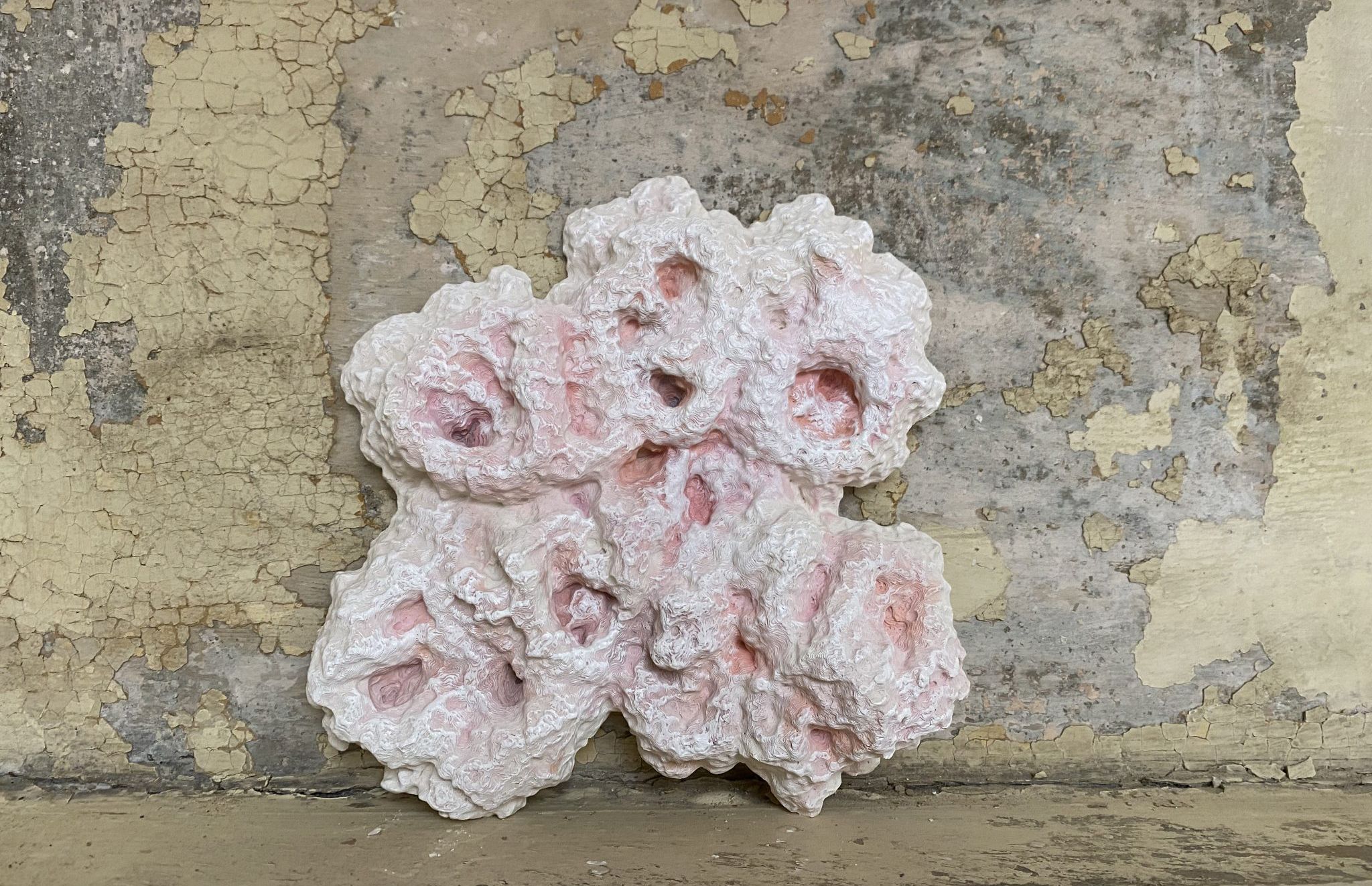 Another work in the series called ‘The Bio-archeology of Yeast’ explores not only the problem solving capabilities of yeast biotechnology, but also reveals an aesthetic appreciation of fermentation. The main inspiration for the work are extremophile fungi, or commonly known as ‘black yeasts’. Where normally they are seen as vile, pointing out unclean environments, the sculpture highlights its beauty instead. The work, created from Roman cement is stained with these black yeasts among other microorganisms, reflecting the beauty of decay.
