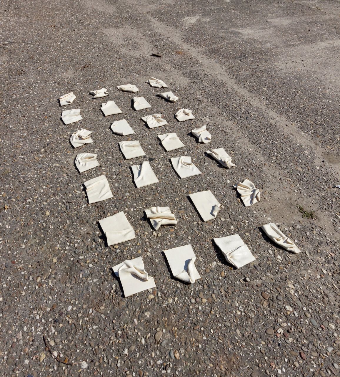 Over a 11 week period, I documented the position and shape of the bath mat in my shared household when it frustrated me. The 28 mat versions that resulted from this were then meticulously recreated to scale and preserved in ceramics. These objects contain the unwittingly youthful and vital movements of my roommate, an energy which I wish to preserve since it is in heavy contrast with that of mine.