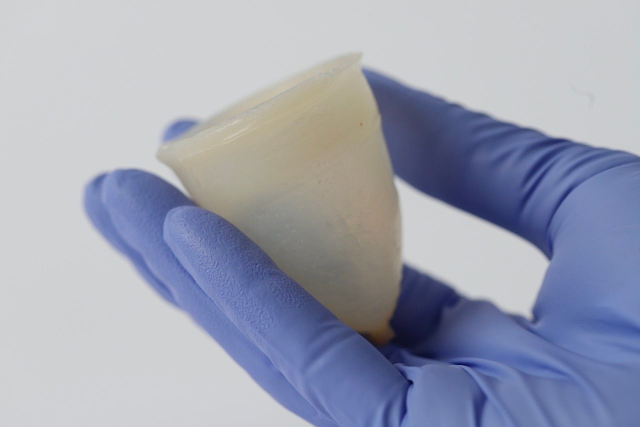 As an alternative, I have decided to cast my prototypes and the optimal result was achieved using a mould made of calcium chloride and agar to allow the alginate gel to become solid after a few hours inside the two parts mould. The lab experiments validated the project by answering questions like: are lactobacillus able to move, grow, and survive a cross-linked hydrogel? The first living menstrual cup prototype is made using a biocompatible hydrogel that allows bacterial viability. Several strains of vaginal lactobacillus extracted from my own body exponentially grew inside the material over two days of incubation at 37°C.