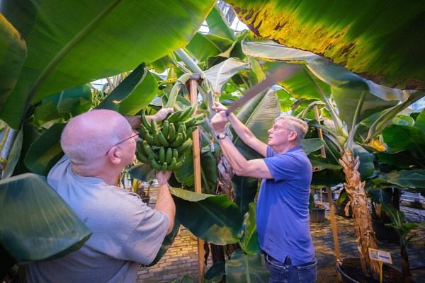 Neder Banaan, an initiative based in Ede, is the first and only banana plantation in the Netherlands. Their goal is to research banana cultivation in order to prevent it from being completely wiped out by harmful fungi. Instead of using traditional open-ground framing, they grow their plants in pots with a special substrate to reduce the risk of fungal contamination. Their greenhouse currently houses approximately a hundred plants, and ambitious expansion plans are in the making.