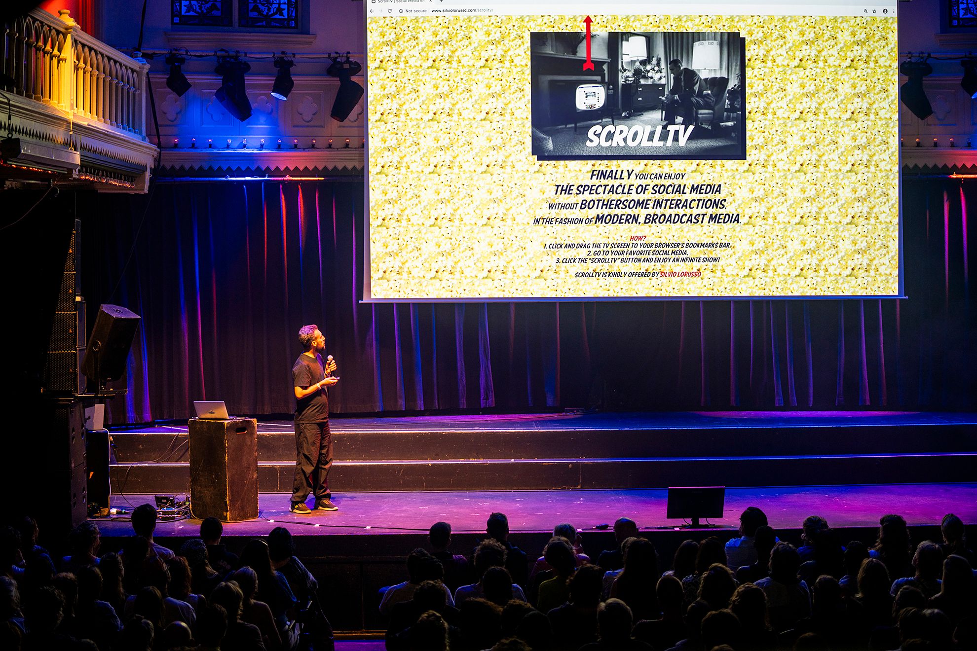 Next, Portuguese designer and author Silvio Lorusso presented ten years of work and reflections on internet-related discomforts. With humor, he addressed a variety of topics, such as vibrating smartphone icons and left-handed mouse cursors. His critical view of digital culture resonated with the audience.