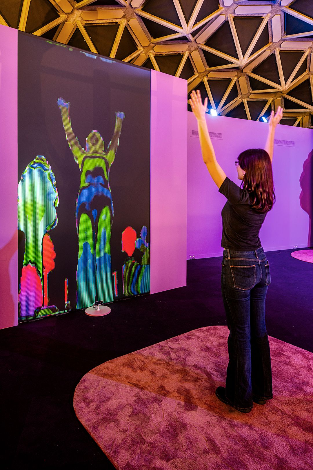 The Scroll Wall let’s you experience the difference between using your body and the effortless swiping you’re used to on a smartphone. It makes you aware of how little energy and effort we normally expend when consuming content on a screen.
