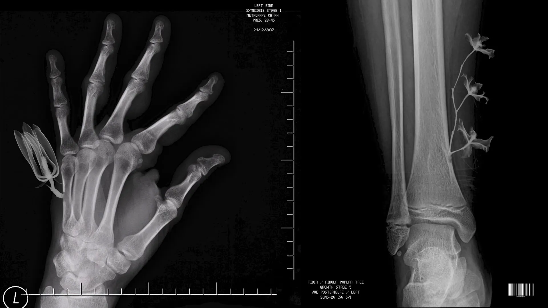 Using bones and wood as a case study for this possible blend, Botanical Bodies looks at the implications of human symbiosis with the vegetal kingdom. Through extracting a wooden bone from a living tree and implantating it into the human body, this work imagines how the distinctions between humans and plants, crowds and forests, bone and wood may fade away towards a new synergy.