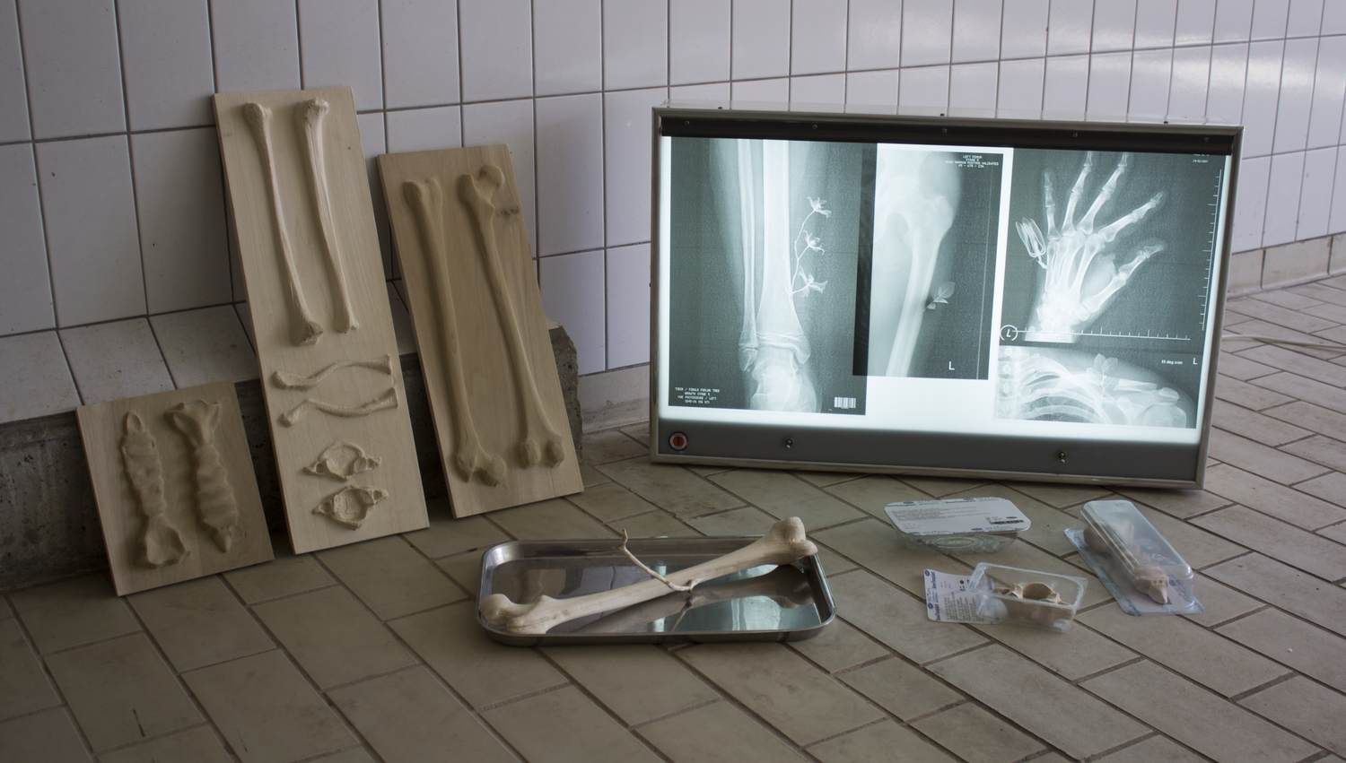 We are all intimately familiar with our bones in terms of their shape, the movements they allow, the structure they create, however, we don’t visually see them as a material in the way we interact with our skin, for example. Given that they remain unseen, wooden bones have similarities to human bones in terms of their texture, warmth and weight. Although metal is traditionally used to repair bones, it always acts as a support rather than seamlessly blending into the body. Wood as an organic matter seems more likely to be accepted by the body as it can merge with existing tissues.