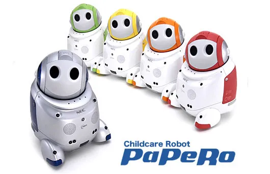 NEC Corporation ontwikkelt een "Kinderopvangrobot PaPeRo" die in staat is om met kinderen te spelen en op hen te passen. De Kinderopvangrobot kan mensen herkennen en verbaal met hen communiceren, afbeeldingen via mobiele telefoon naar personen ver weg sturen, evenals spelletjes spelen en meezingen met anderen. Hiermee onderzoekt NEC nieuwe relaties en mogelijkheden als onderdeel van kindergroepen op kinderdagverblijven, peuterspeelzalen en basisscholen.