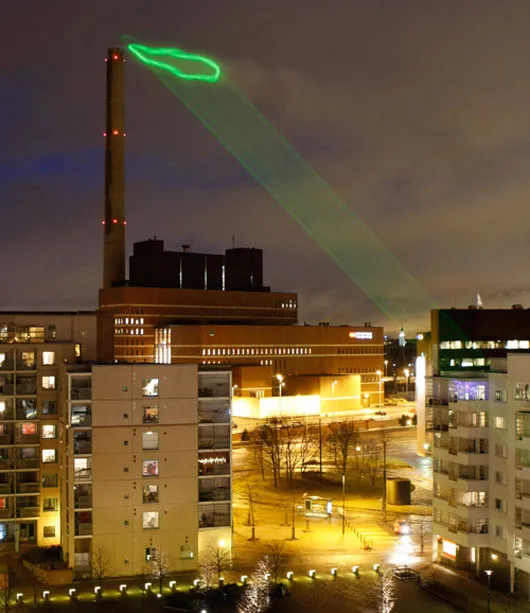 Informatieve decoratie op stedelijke schaal. Elke nacht van 22 tot en met 29 februari 2008 zullen de stoomemissies van de Salmisaari-energiecentrale in Helsinki verlicht worden om de huidige niveaus van elektriciteitsverbruik door lokale bewoners weer te geven. Een laserstraal zal het wolkenspoor gedurende de nacht volgen en het omzetten in een neonstijl grafiek.