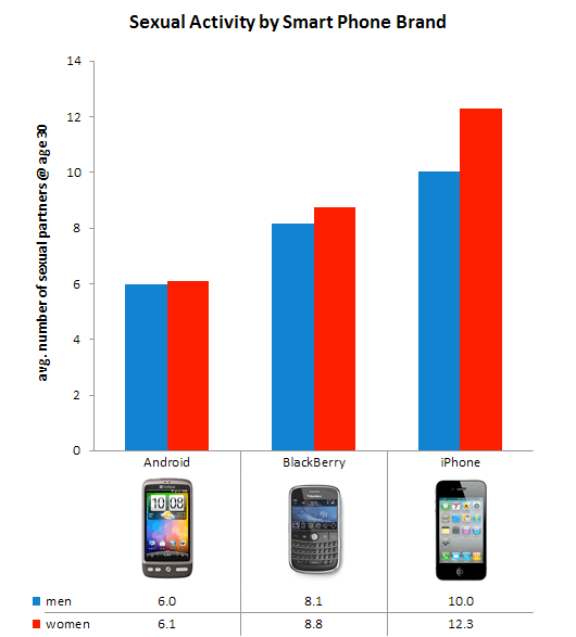 Ook interessant is de observatie dat 30-jarige iPhone-gebruikers aanzienlijk seksueel actiever zijn dan Android- of Blackberry-gebruikers. Het lijkt erop dat hoe meer seksualiteit technologie-gedreven is, hoe meer technologie zelf een teken van seksuele aantrekkelijkheid wordt. Aangezien nieuwe technologieën vaak oude impulsen oproepen, ben ik benieuwd hoe de fotografiebranche hierop zal reageren.