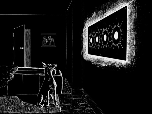 We installeerden Happylife. In het begin gebeurde er niet veel: een incidentele draaiing, een nauwelijks waarneembare verandering in de lichtintensiteit. Maar we voelden dat het naar ons keek en wisten dat een soort van onderzoekende analyse was begonnen. Na slechts een paar maanden merkten we dat we de positie van de knoppen begonnen te anticiperen. De individuele displays weerlegden zelden onze verwachtingen, maar wanneer dat wel gebeurde, moedigde het ons aan om in onszelf te kijken.