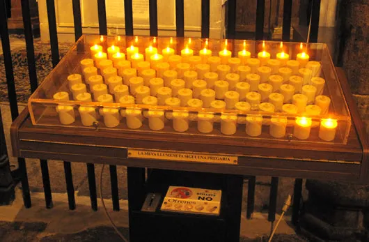 Tijdens een recent bezoek aan de Centrale Kathedraal in Barcelona, Spanje, zag ik deze op LED gebaseerde wake lights, die naadloos de waskaarsen vervangen die traditioneel werden gebruikt om je gebed tastbaar te maken. Blijkbaar hebben de godvrezende mensen die de Kerk leiden besloten dat er geen noemenswaardig spiritueel verschil is tussen LED's en brandende kaarsen?