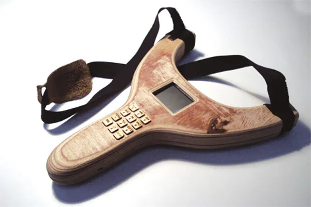 Urban intervention, naughty boy-style! The public media interventionists of VR/Urban have designed a cool tool to intervene into next nature: the SMSlingshot. A wooden, embedded interaction device –equipped with an ultra-high frequency radio, a hacked Arduino board, laser and batteries – to shoot your own message directly onto a building or media facade. With some tucked away beamers, it works like magic. Reclaim the screens!