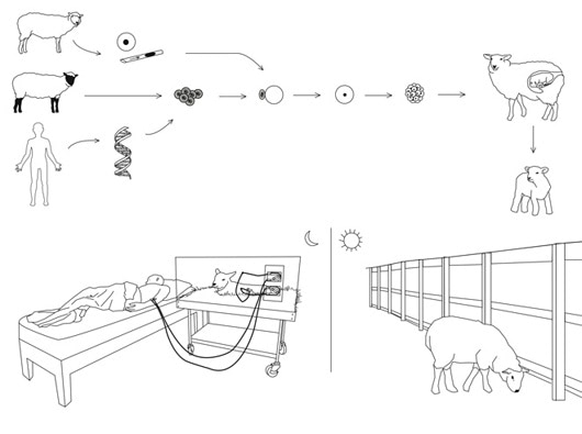Ontwerpster Revital Cohen verbeeldt een toekomst waarin levensondersteunende machines worden vervangen door levensondersteunende dieren. In dit scenario mag een transgeen lam overdag ronddartelen in de velden. 's Nachts wordt het lam aangesloten op een nierpatiënt om zijn bloed te filteren. De kunstenares presenteert een wederzijds voordelige relatie: de mens leeft als een parasiet, en het lam leeft om een medisch apparaat te zijn, niet als paasmaal. Hoewel het een vreemd visioen is, kan het humaner zijn dan het doden van dieren, of ze nu genetisch gemanipuleerd zijn of niet, voor hun reserveonderdelen.