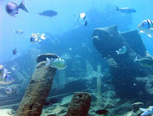 Published in Next Nature book. Image Fish using shipwreck, Northwest Hawaiian Islands, photo via Photolib.nasa.gov.