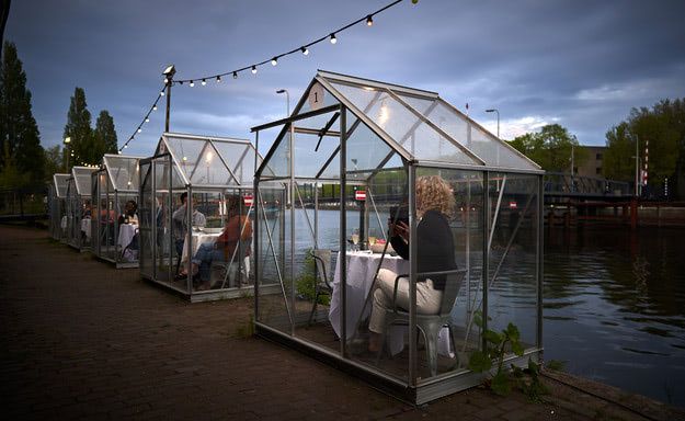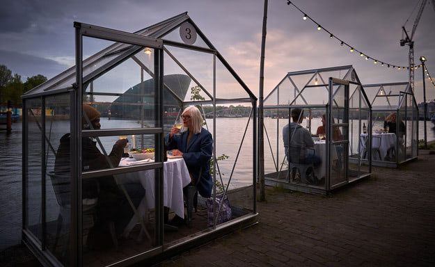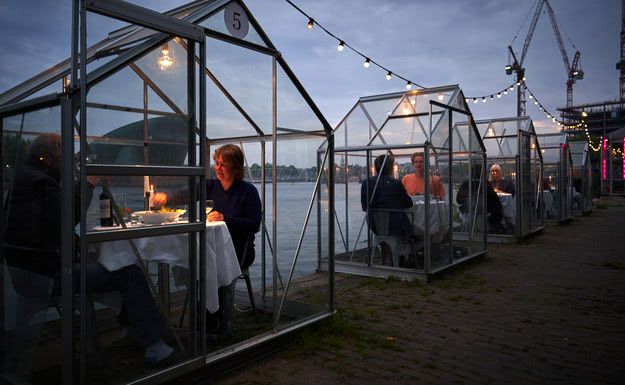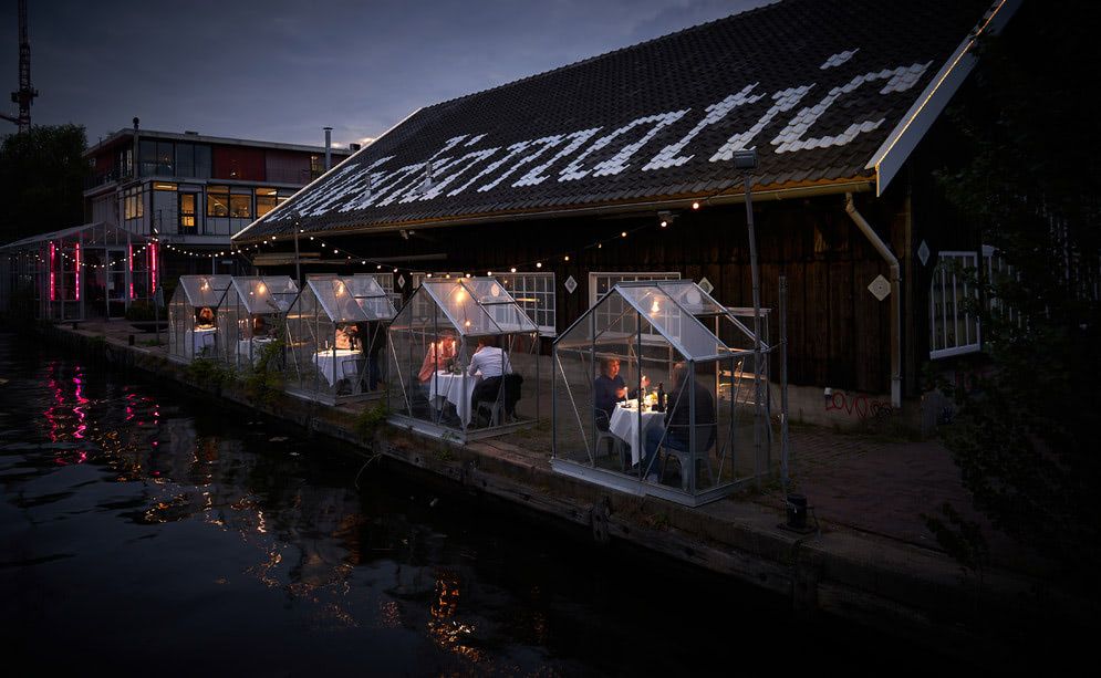 Bij Mediamatic hebben ze een quarantaine-goedgekeurde opstelling ontworpen voor het restaurant: Serres Sépparées. Dit maakt het mogelijk voor stellen om een romantische avond uit te gaan in hun eigen privé beschermde cabine.