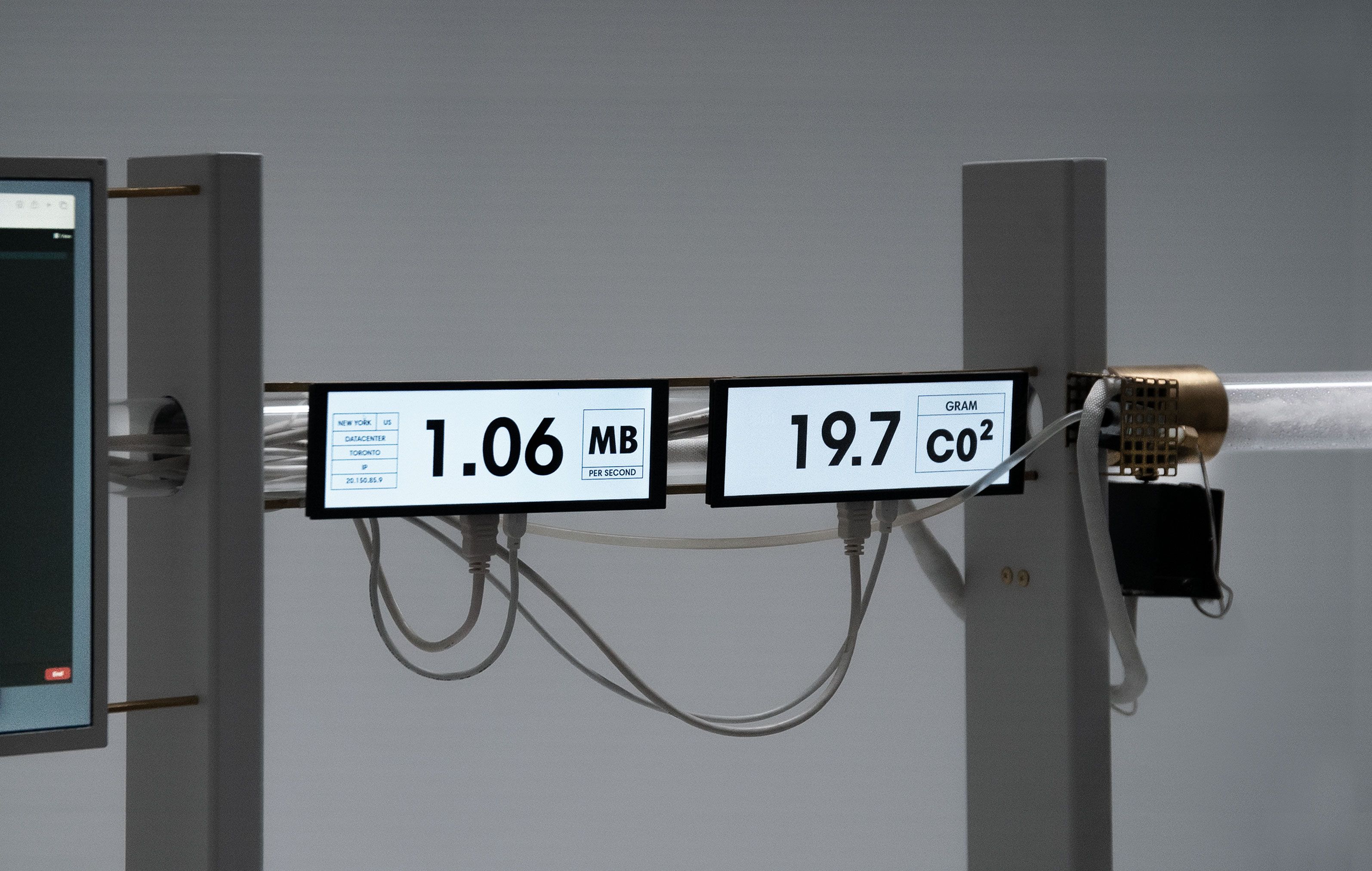 Het vervangen van onze files door online snelwegen om via Zoom af te spreken lijkt een verschuiving die beter is voor zowel mensen als de planeet. Wat we vaak vergeten, is dat dit online verkeer ook energie nodig heeft om te functioneren en dat deze energieopwekking nog steeds koolstofdioxide uitstoot. Daarom heeft ecologisch kunstenaar Thijs Biersteker een kunstinstallatie ontworpen: MB>CO₂. Het toont de hoeveelheid koolstofdioxide die wordt uitgestoten bij het gebruik van een bepaalde hoeveelheid megabytes.