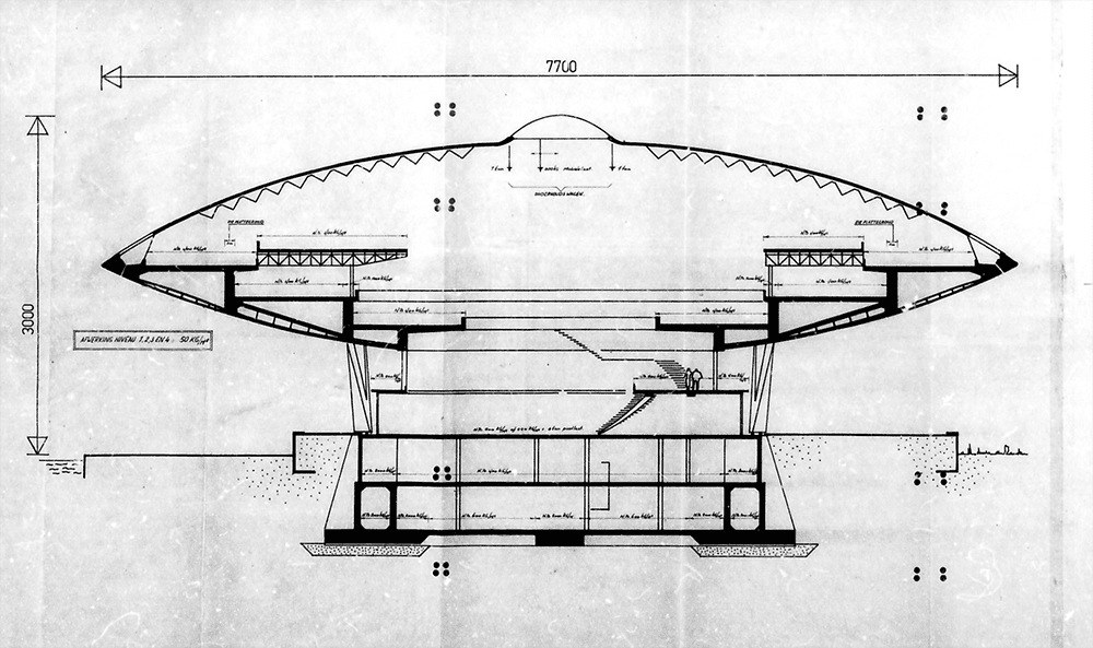 In 1966 - drie jaar voordat Neil Armstrong als eerste op de maan stapt – opende het gebouw dat rust op twaalf V-vormige kolommen. Met een doorsnee van 77 meter is het de grootste koepelconstructie van Nederland, opgetrokken uit hypermoderne materialen als beton en kunststof.