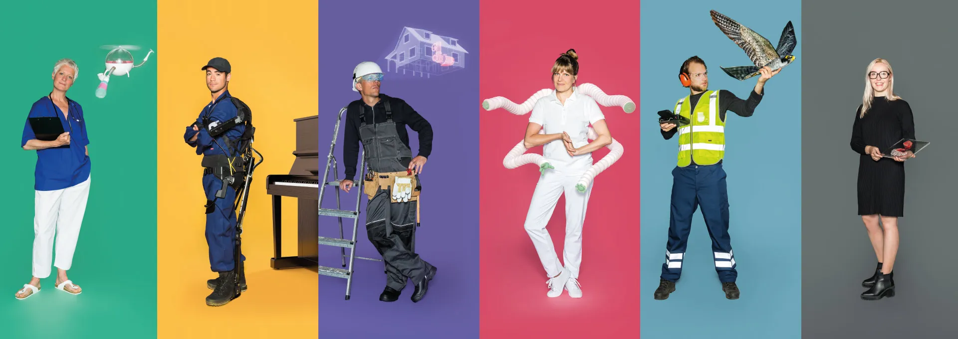 HUBOT explores the future of work. Our goal is to inspire everybody, from people with lower education to highly educated ones, from young to old, including those who are currently excluded from the labor market. The speculative job agency is the catalyst for the changing job market. It offers 16 professions in which technology allows people to do jobs they could not have done otherwise. What do you think about a mover wearing a robotic suit, a gaming farm manager, or a six-armed masseur?