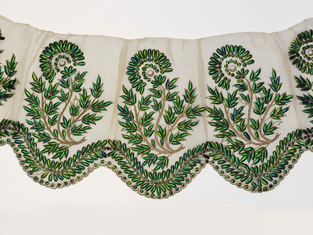 Brunato’s research reveals how sequins tell the story of an age-old “human desire to attain nature’s beauty,” and that “our attraction to glimmering surfaces might even relate back to our primary need for water.” Charting the history of sequins, she notes how they are “deeply interwoven with the cultures in which they exist.” For example, sequins have appeared on the burial garments of Egyptian royals in the form of metal coins, and have adorned the dresses of 19th century nobility in the form of beetle wings.
